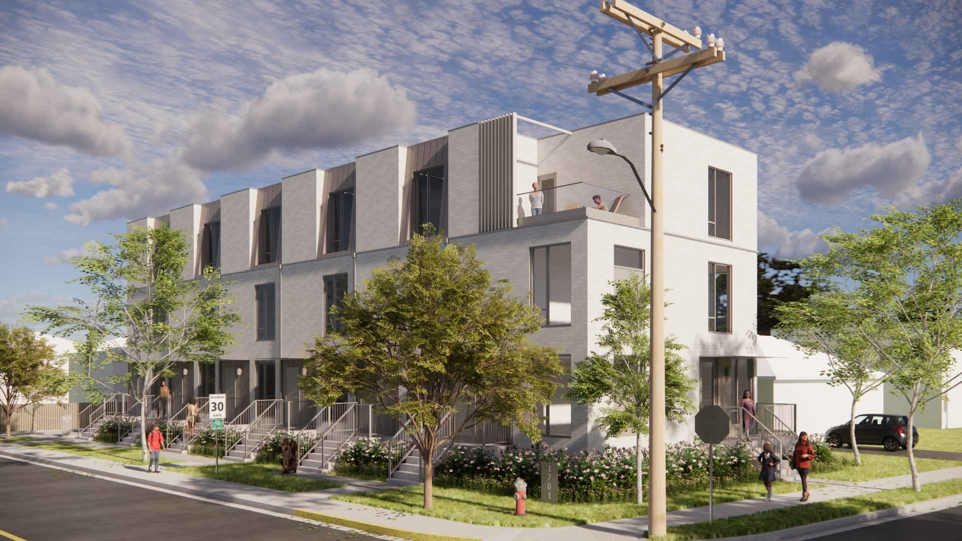 This Missing Middle project offers 12 thoughtfully designed townhomes in Fairfield. Designed to read as a three-storey, six-unit walk-up rowhouse, the building contributes to a pedestrian-friendly streetscape with active frontages and distinct, ground-oriented entries.
